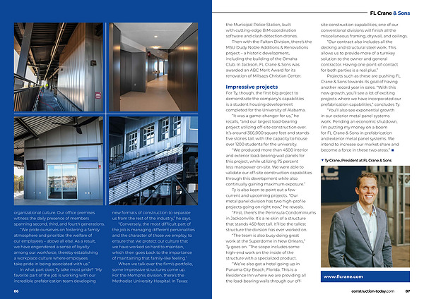 Projects such as these are pushing FL Crane & Sons towards its goal of having another record year in sales . “ With this new growth , you ’ ll see a lot of exciting projects where we have incorporated our prefabrication capabilities ,” concludes Ty .