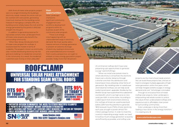 Through its innovative front-of-meter rooftop solar projects , Solar Landscape is empowering real estate owners to unlock the value of their underutilized rooftops and expand access to affordable clean power for surrounding communities .