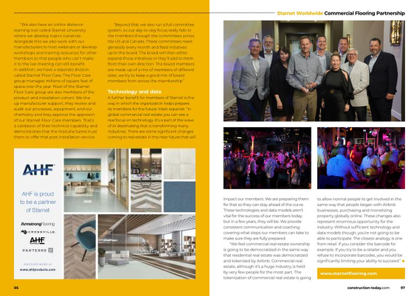 “ We also have an online distance learning tool called Starnet University where we develop topics ourselves . Alongside this we also work with our manufacturers to host webinars or develop workshops and training resources for other members so that people who can ’ t make it to the live meeting can still benefit . In addition , we have a separate division called Starnet Floor Care . The Floor Care group manages millions of square feet of space over the year . Most of the Starnet Floor Care group are also members of the product and installation cohort . We line up manufacturer support , they review and audit our processes , equipment , and our chemistry and they approve the approach of our Starnet Floor Care members . That ’ s a validation of their technical capability and demonstrates that the manufacturers trust them to offer that post installation service .