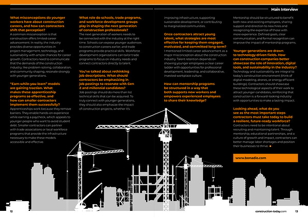 Looking ahead, what do you see as the most important steps contractors must take today to build a resilient, future-ready workforce? Contractors need to be intentional about recruiting and maintaining talent. Through mentorship, educational partnerships, and a culture of growth and impact, contractors can better manage labor shortages and position their businesses to thrive. ■