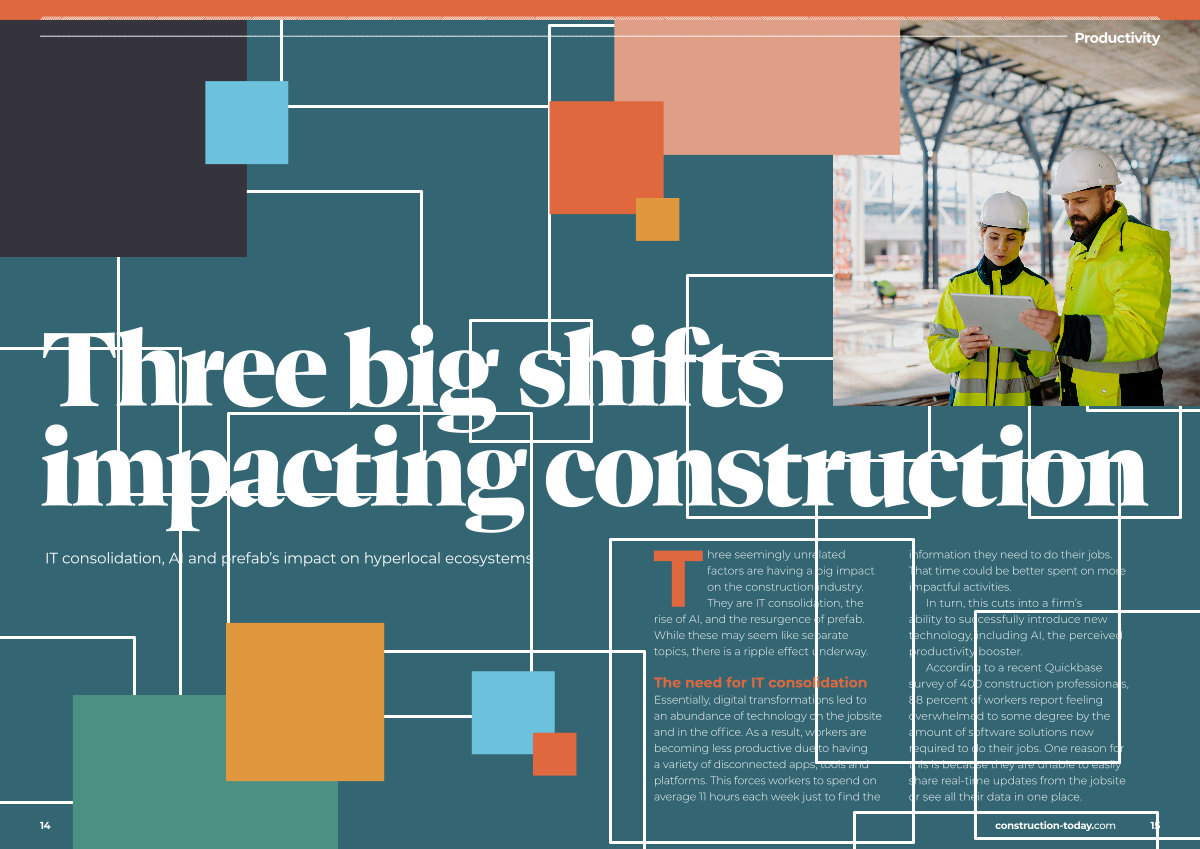 Three seemingly unrelated factors are having a big impact on the construction industry. They are IT consolidation, the rise of AI, and the resurgence of prefab. While these may seem like separate topics, there is a ripple effect underway.