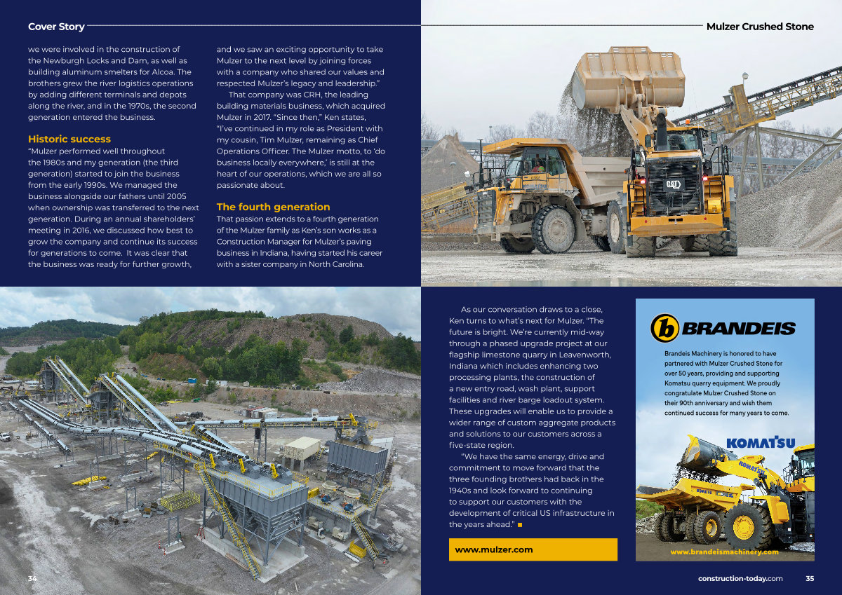 That passion extends to a fourth generation of the Mulzer family as Ken’ s son works as a Construction Manager for Mulzer’ s paving business in Indiana, having started his career with a sister company in North Carolina.