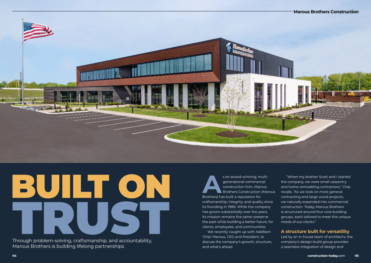 As an award-winning, multigenerational commercial construction firm, Marous Brothers Construction( Marous Brothers) has built a reputation for craftsmanship, integrity, and quality since its founding in 1980. While the company has grown substantially over the years, its mission remains the same: preserve the past while building a better future, for clients, employees, and communities.