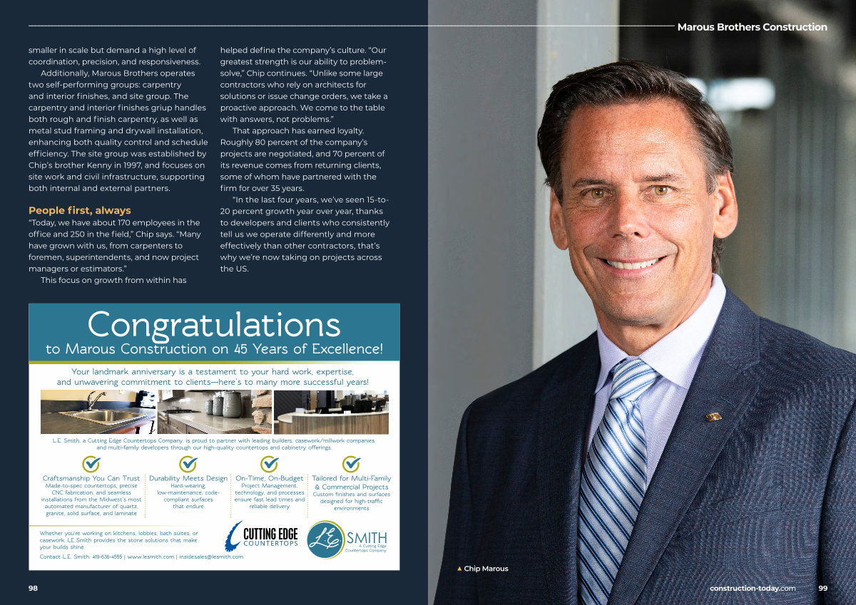 “ Today, we have about 170 employees in the office and 250 in the field,” Chip says.“ Many have grown with us, from carpenters to foremen, superintendents, and now project managers or estimators.”