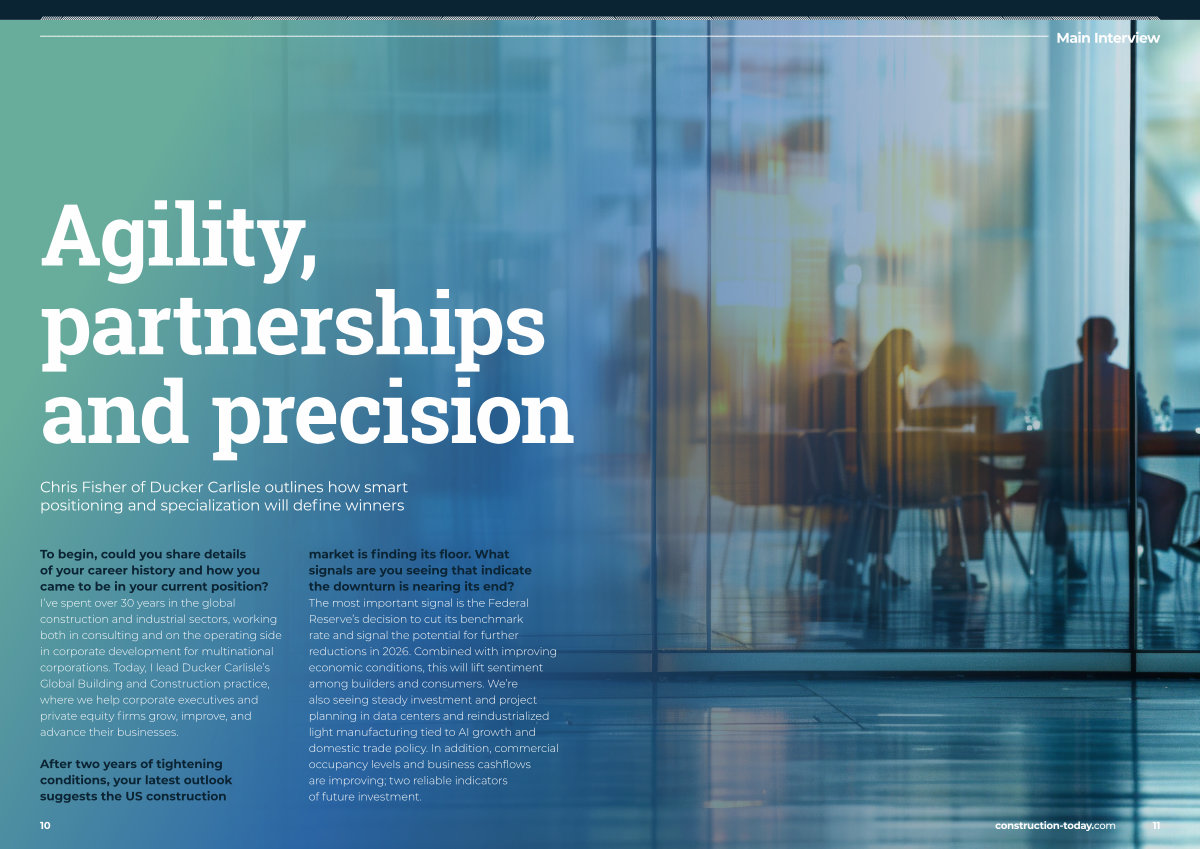 After two years of tightening conditions, your latest outlook suggests the US construction market is finding its floor. What signals are you seeing that indicate the downturn is nearing its end? The most important signal is the Federal Reserve’ s decision to cut its benchmark rate and signal the potential for further reductions in 2026. Combined with improving economic conditions, this will lift sentiment among builders and consumers. We’ re also seeing steady investment and project planning in data centers and reindustrialized light manufacturing tied to AI growth and domestic trade policy. In addition, commercial occupancy levels and business cashflows are improving; two reliable indicators of future investment.