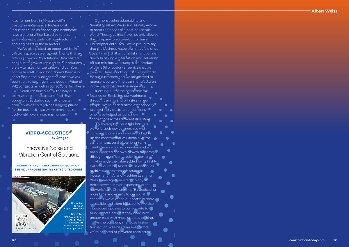 Alongside the value added by its highly skilled workforce, Albert Weiss continues to drive success through strategic investment in AI and Machine Learning.“ We’ ve leveraged new technology to better serve our ever-expanding client network,” says Christopher.“ By dedicating more time and energy to our social channels, we’ ve made our portfolio more accessible and client focused. We’ ve also introduced updates to our website to help visitors find what they need with greater ease with more updates coming.