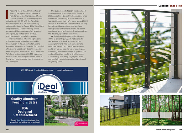 The business has hit some significant milestones since it was last featured in Construction Today. Zach Peyton, Brand President & Founder at Superior Fence & Rail offers some updates on its achievements, beginning with a well-timed announcement:“ We have just surpassed 30,000 customer reviews, with an average score of 4.8 out of five, which is an important achievement for us,” he begins.