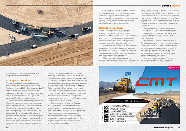 “ The acquisition of Georgia Paving in 2025 marked a key milestone in this journey, allowing us to establish a strong presence in the Southeast. It brought nearly three decades of industry experience, a dedicated team, and a reputation for outstanding customer service, all of which align seamlessly with Sunland’ s values and operational standards.