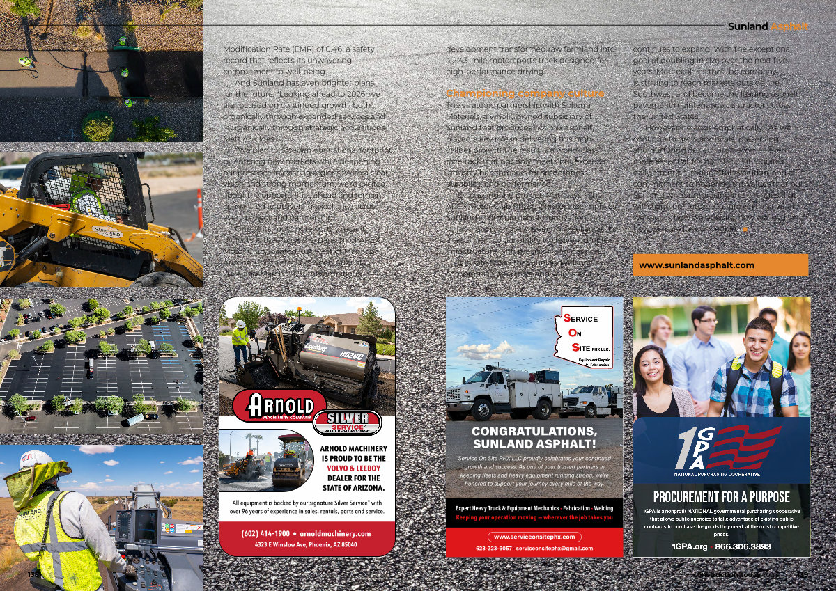 Discussing the project, Matt says:“ The APEX Motor Club Phase 2 project exemplifies Sunland’ s commitment to innovation, collaboration, and engineering excellence. It’ s a testament to our ability to deliver complex infrastructure with precision and passion.” It is safe to say that Sunland will not compromise its culture and values as it continues to expand. With the exceptional goal of doubling in size over the next five years, Matt explains that the company is striving to reach markets outside the Southwest and become the leading asphalt pavement maintenance contractor across the United States.