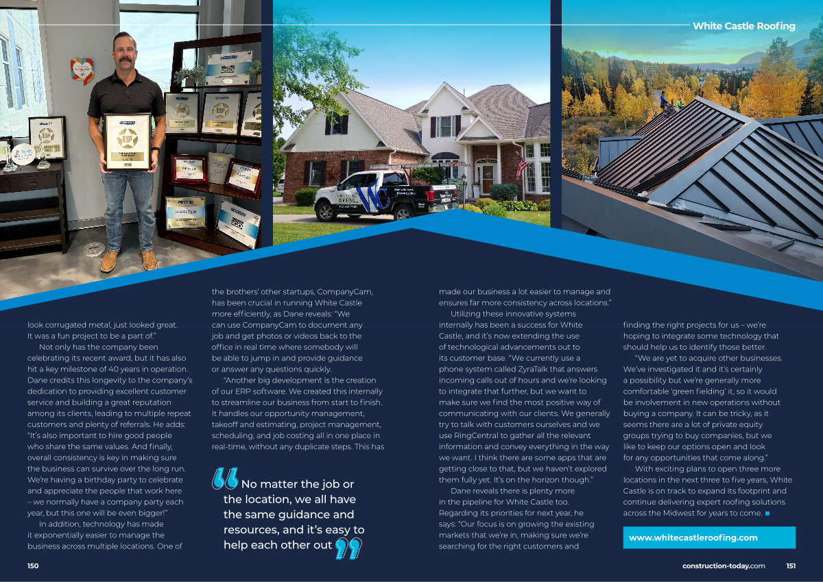 Dane reveals there is plenty more in the pipeline for White Castle too. Regarding its priorities for next year, he says:“ Our focus is on growing the existing markets that we’ re in, making sure we’ re searching for the right customers and finding the right projects for us – we’ re hoping to integrate some technology that should help us to identify those better.