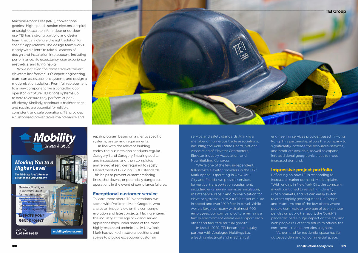 Reflecting on how TEI is responding to increased market demand, Mark explains:“ With origins in New York City, the company is well positioned to serve high density urban markets, and we can easily switch to other rapidly growing cities like Tampa and Miami. As one of the few places where people commute an average of over an hour per day on public transport, the Covid-19 pandemic had a huge impact on the city and with people reluctant to return to offices, the commercial market remains stagnant.