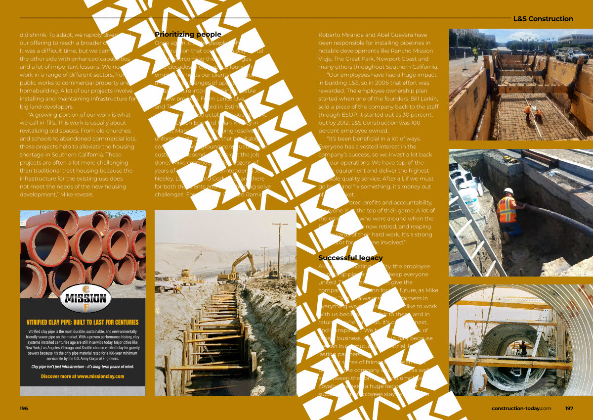 Once again, it is the people behind L & S Construction that continue to play a vital role in overcoming these challenges.“ The decades of experience found in our employees helps our clients to overcome the many challenges of updating old infrastructure into something useable for new projects. From Lance Uva and Thomas Shackford in Estimating overcoming constructability issues to Jake Hogue, Dibon Epp and Brian Kinney in Project Management helping resolve the unforeseeable problems that inevitably come with underground construction, our customers depend on us to get the job done,” Mike continues.“ With dozens of years of experience, Superintendents Jerry Neeley, Luis Diaz and Cody Diaz are there for both the clients and crews helping solve challenges. Foremen like Gumaro Ramirez,