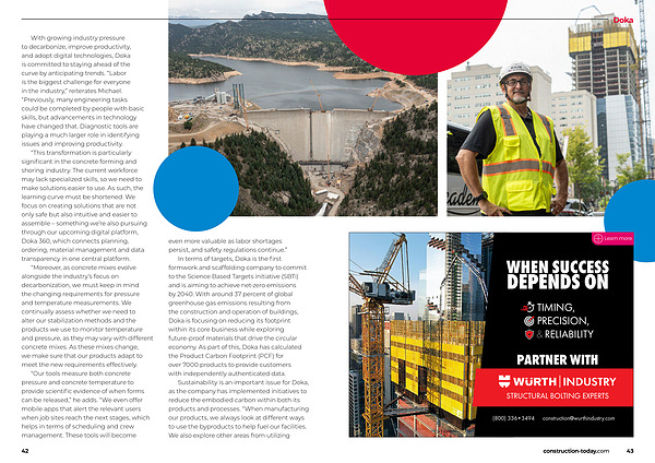 With growing industry pressure to decarbonize, improve productivity, and adopt digital technologies, Doka is committed to staying ahead of the curve by anticipating trends.“ Labor is the biggest challenge for everyone in the industry,” reiterates Michael.“ Previously, many engineering tasks could be completed by people with basic skills, but advancements in technology have changed that. Diagnostic tools are playing a much larger role in identifying issues and improving productivity.