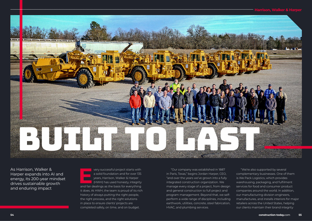 Every successful project starts with a solid foundation and for over 135 years, Harrison, Walker & Harper( HWH) has used honesty, integrity and fair dealings as the basis for everything it does. At HWH, the team is proud of its rich history of always putting the right people, the right process, and the right solutions in place to ensure clients’ projects are completed safely, on time, and on budget.