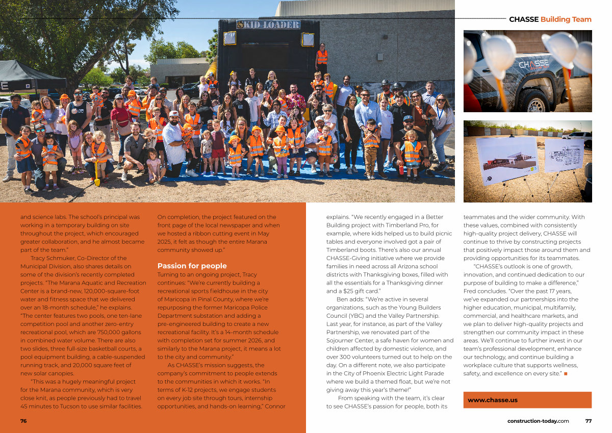 As CHASSE’ s mission suggests, the company’ s commitment to people extends to the communities in which it works.“ In terms of K-12 projects, we engage students on every job site through tours, internship opportunities, and hands-on learning,” Connor