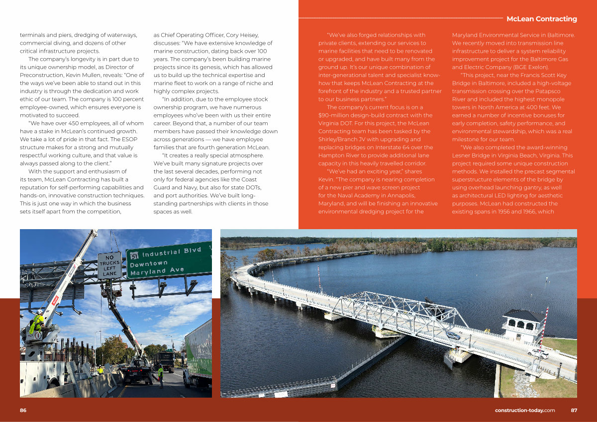 “ It creates a really special atmosphere. We’ ve built many signature projects over the last several decades, performing not only for federal agencies like the Coast Guard and Navy, but also for state DOTs, and port authorities. We’ ve built longstanding partnerships with clients in those spaces as well.