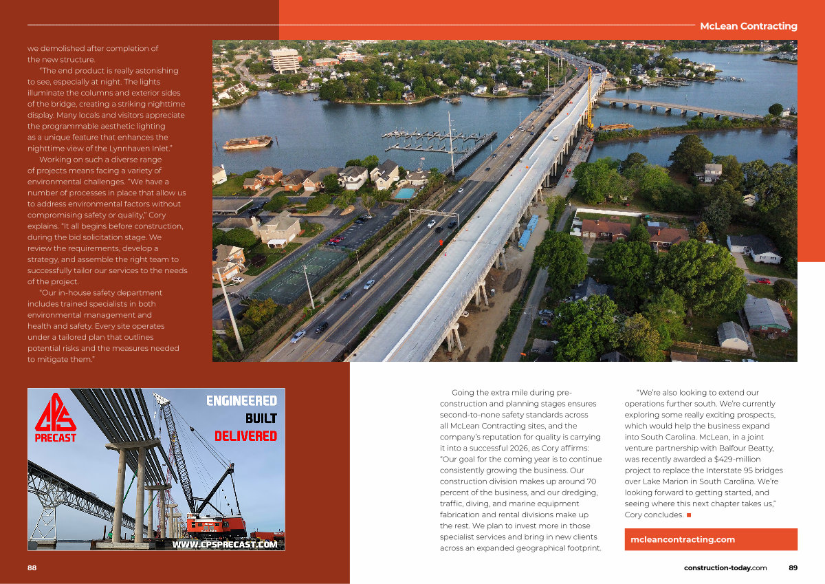 Working on such a diverse range of projects means facing a variety of environmental challenges.“ We have a number of processes in place that allow us to address environmental factors without compromising safety or quality,” Cory explains.“ It all begins before construction, during the bid solicitation stage. We review the requirements, develop a strategy, and assemble the right team to successfully tailor our services to the needs of the project.