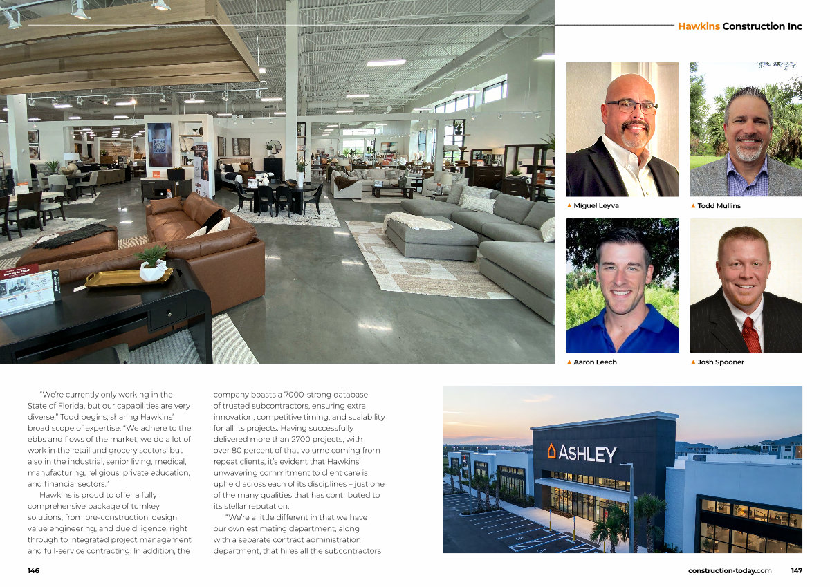 “ We’ re currently only working in the State of Florida, but our capabilities are very diverse,” Todd begins, sharing Hawkins’ broad scope of expertise.“ We adhere to the ebbs and flows of the market; we do a lot of work in the retail and grocery sectors, but also in the industrial, senior living, medical, manufacturing, religious, private education, and financial sectors.”