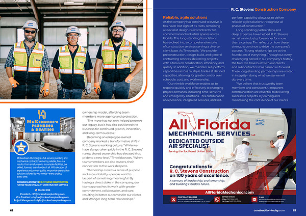 CONGRATULATIONS TO R. C. STEVENS CONSTRUCTION FOR 100 YEARS OF QUALITY CONSTRUCTION SERVICES