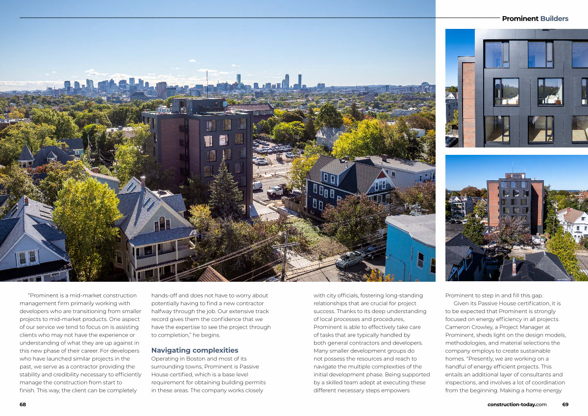 Operating in Boston and most of its surrounding towns, Prominent is Passive House certified, which is a base level requirement for obtaining building permits in these areas. The company works closely
